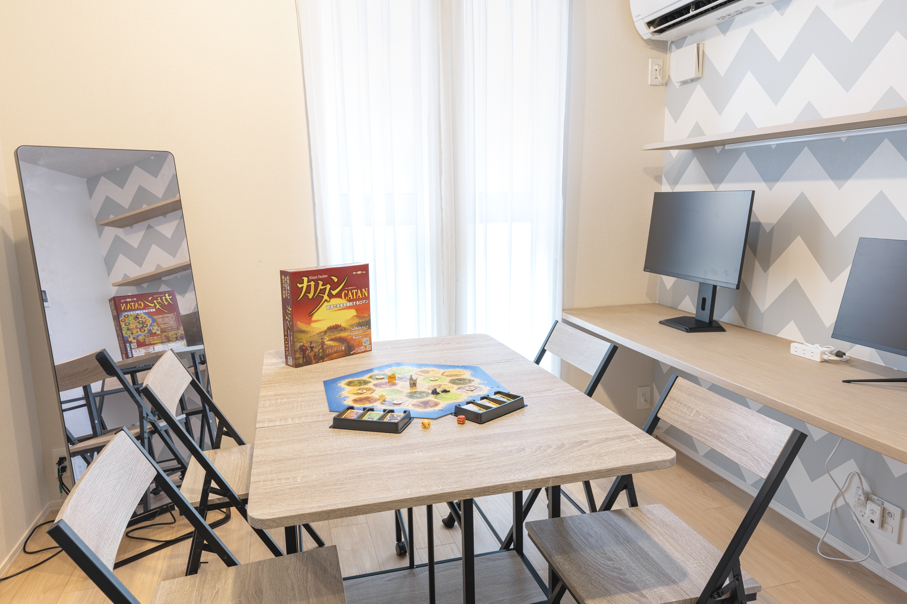 多目的に利用できるワークスペースです。仕事、面談、商談、ヨガで体を動かしたい方、自習や資格試験対策に集中したい方、メイクやトレーニングのプライベートスペース、YouTubeの撮影スペース、新フィットネス機器「MIRROR FIT」体験まで、休憩中には、ボードゲームでリフレッシュも可能、様々な用途にてご活用くださいませ。
