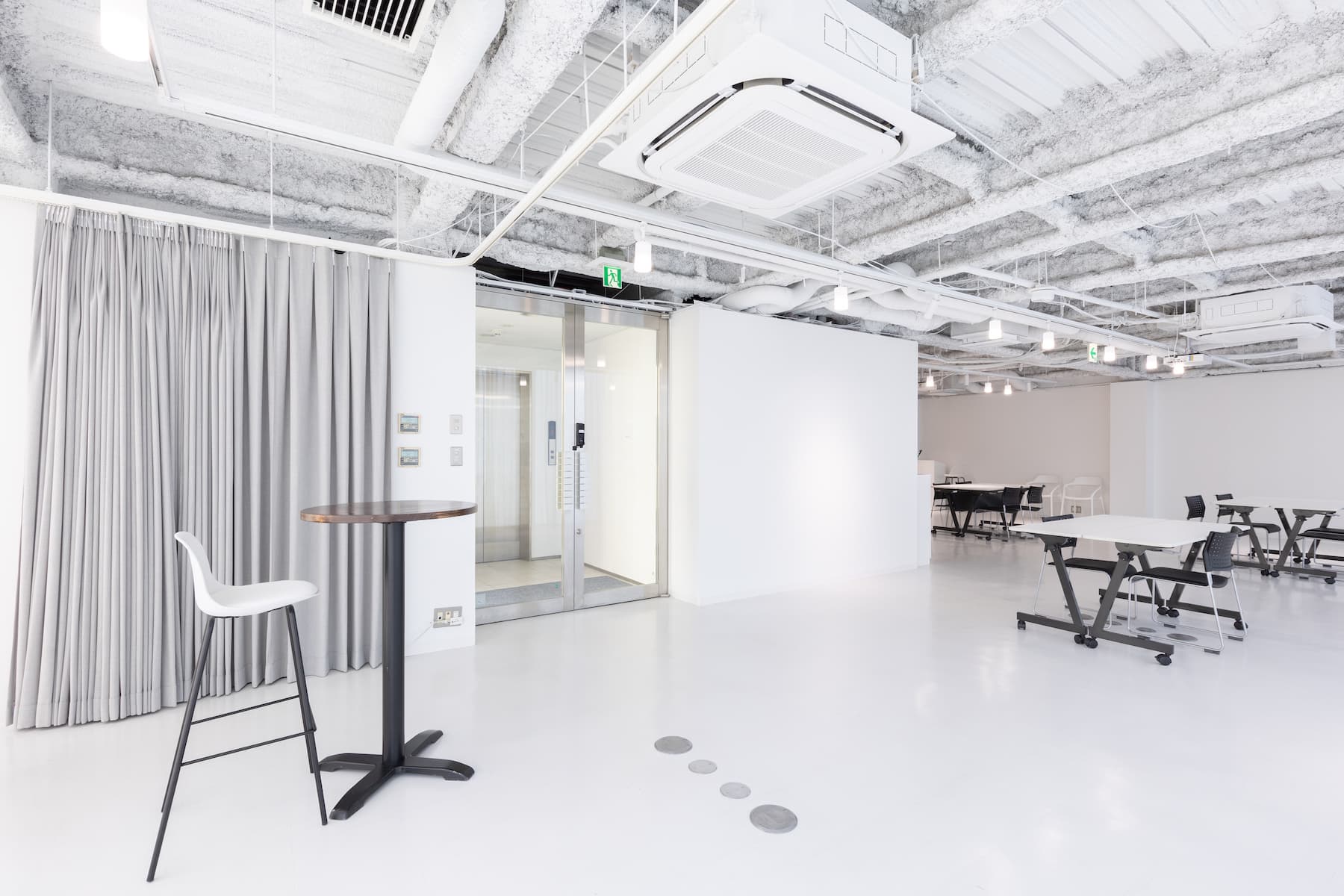 156㎡ある白を基調としたイベントスペースです。控室・フィッティングルーム完備、招待制の新作発表会、ミートアップイベント、アパレルブランドの展示会、コスメブランドのポップアップストア、雑誌のポートレート撮影、ギャラリーや美容室シーンの撮影、ビジネスセミナー・ワークショップ、懇親会も兼ねた社員総会など様々な用途にてご利用いだたけます。
