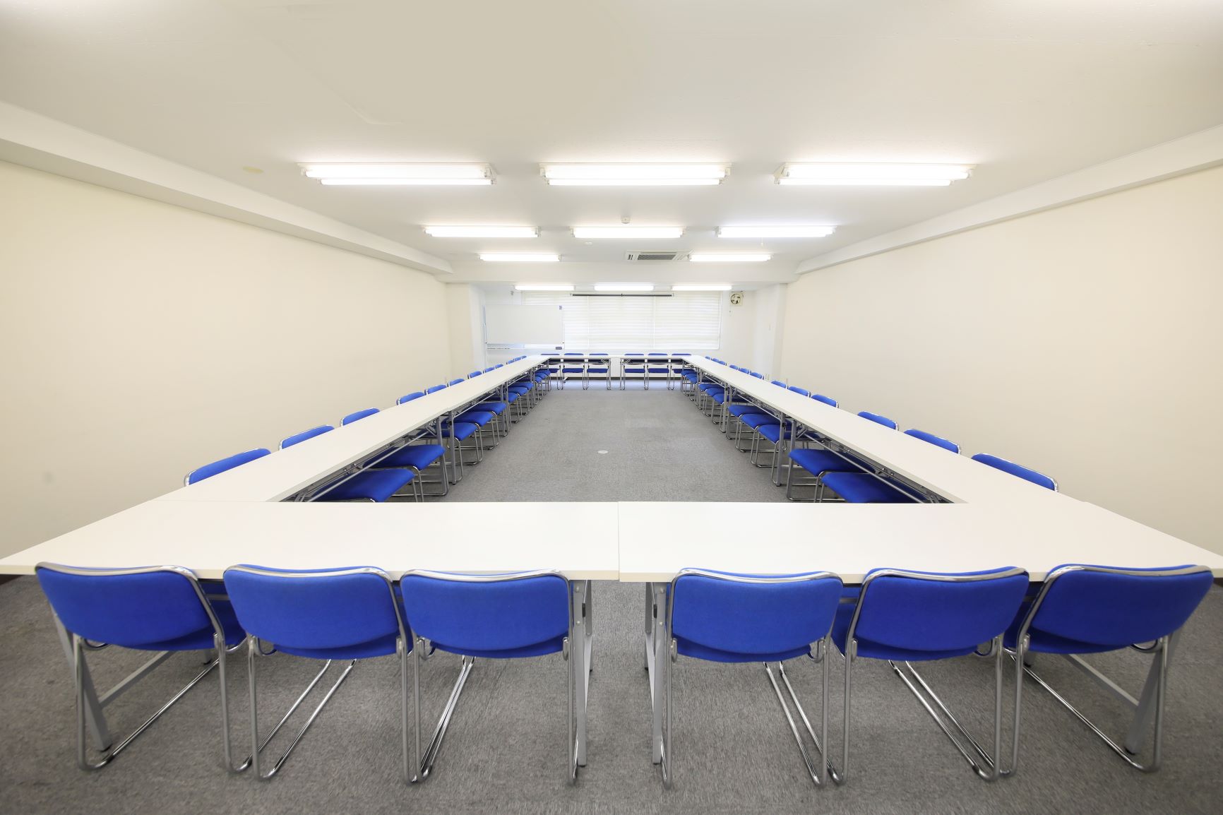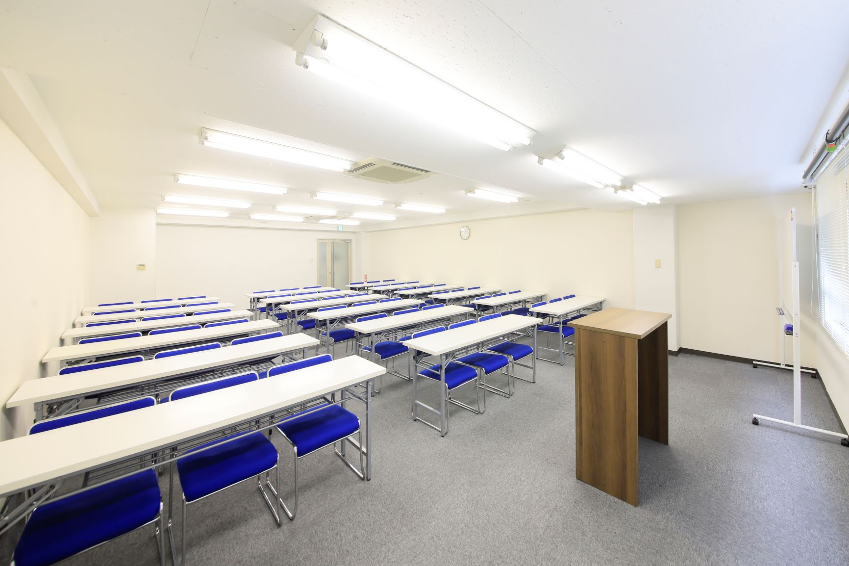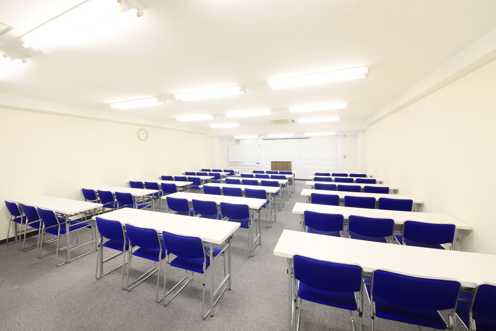 54名 スクール形式が標準レイアウトのお部屋となります。同タイプのお部屋が3室あるので、試験や研修などにもご利用いただいております。ハイブリット、会議、面接、セミナー、勉強会、研修、撮影、個人レッスンなど幅広い用途でお貸出し可能です。無料Wi-Fi6対応、専有型高速光回線も別途有料でご相談可能です。