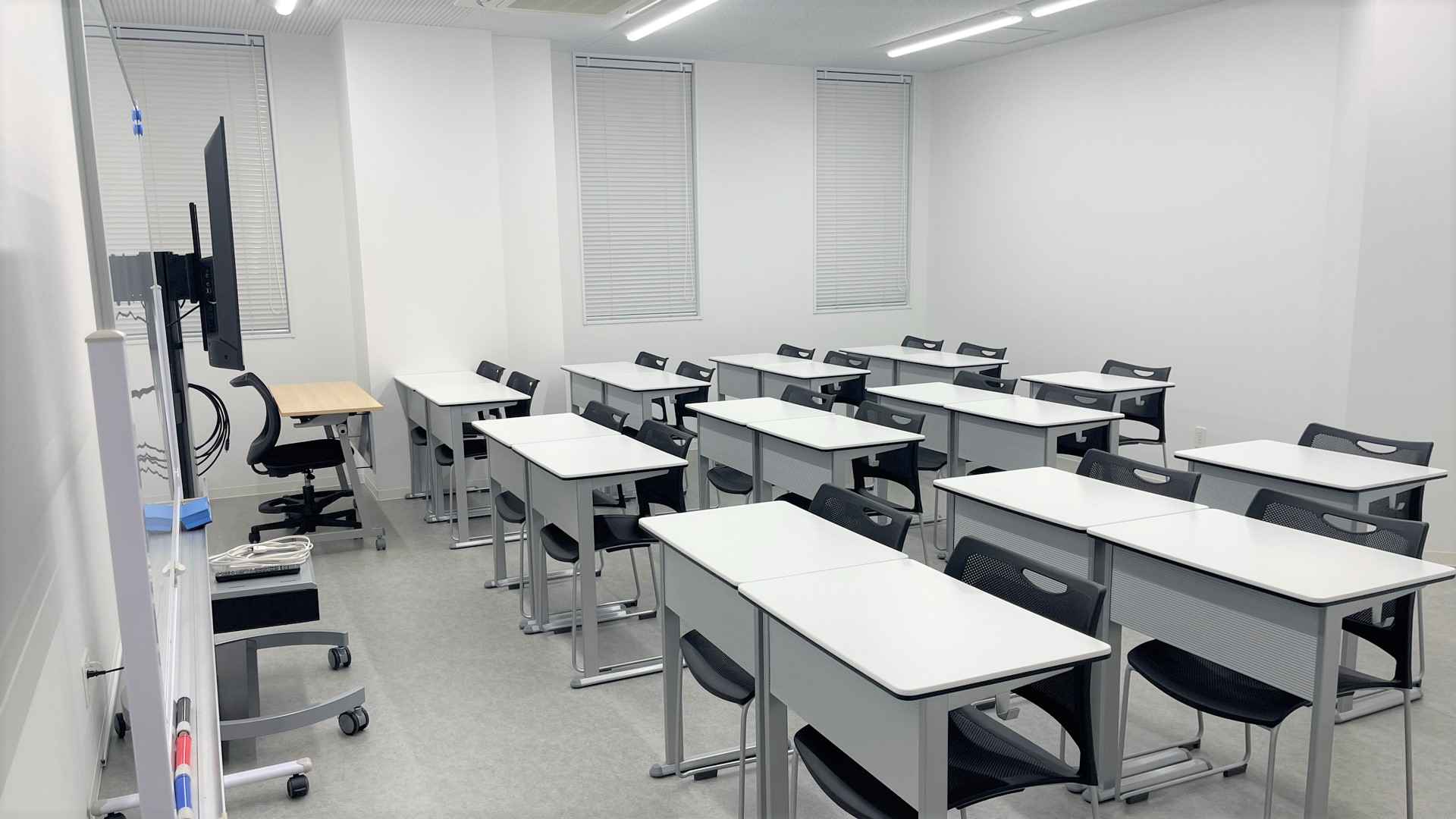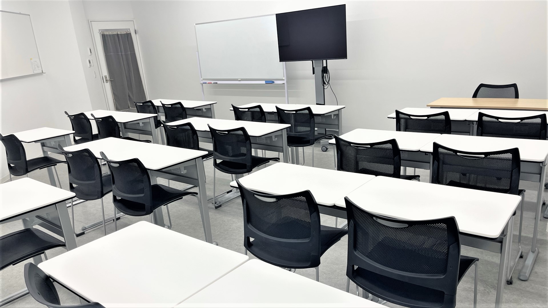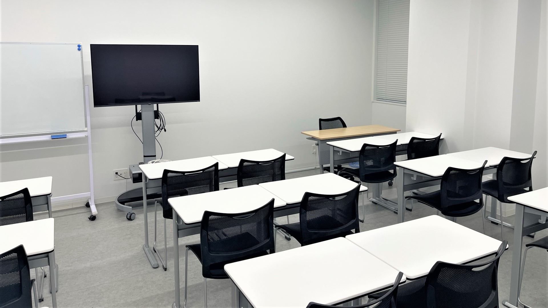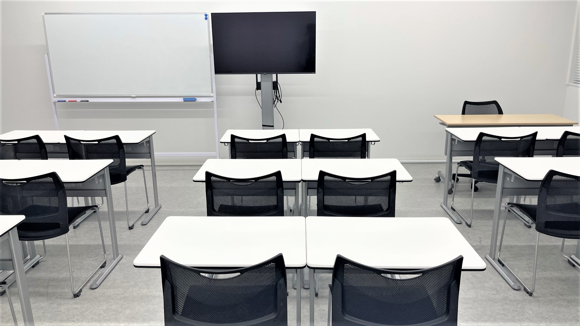 20名 33㎡ スクール形式が標準レイアウトのお部屋となります。小規模セミナー、勉強会、研修、講習会、個人での利用も可能です。毎年研修での長期利用実績多数あり、同様の小部屋は数室あるので幅広い用途でお貸出し可能です。
