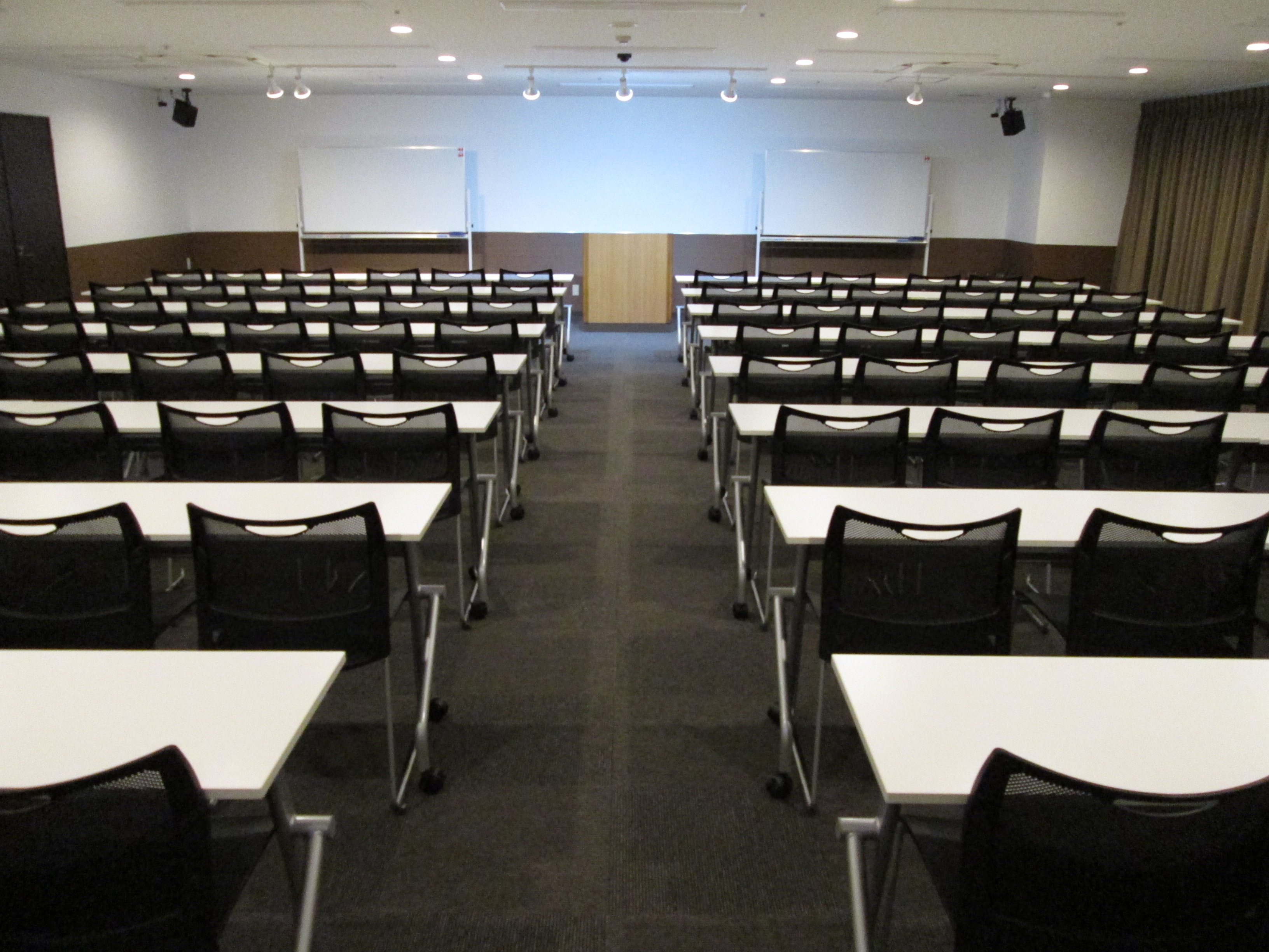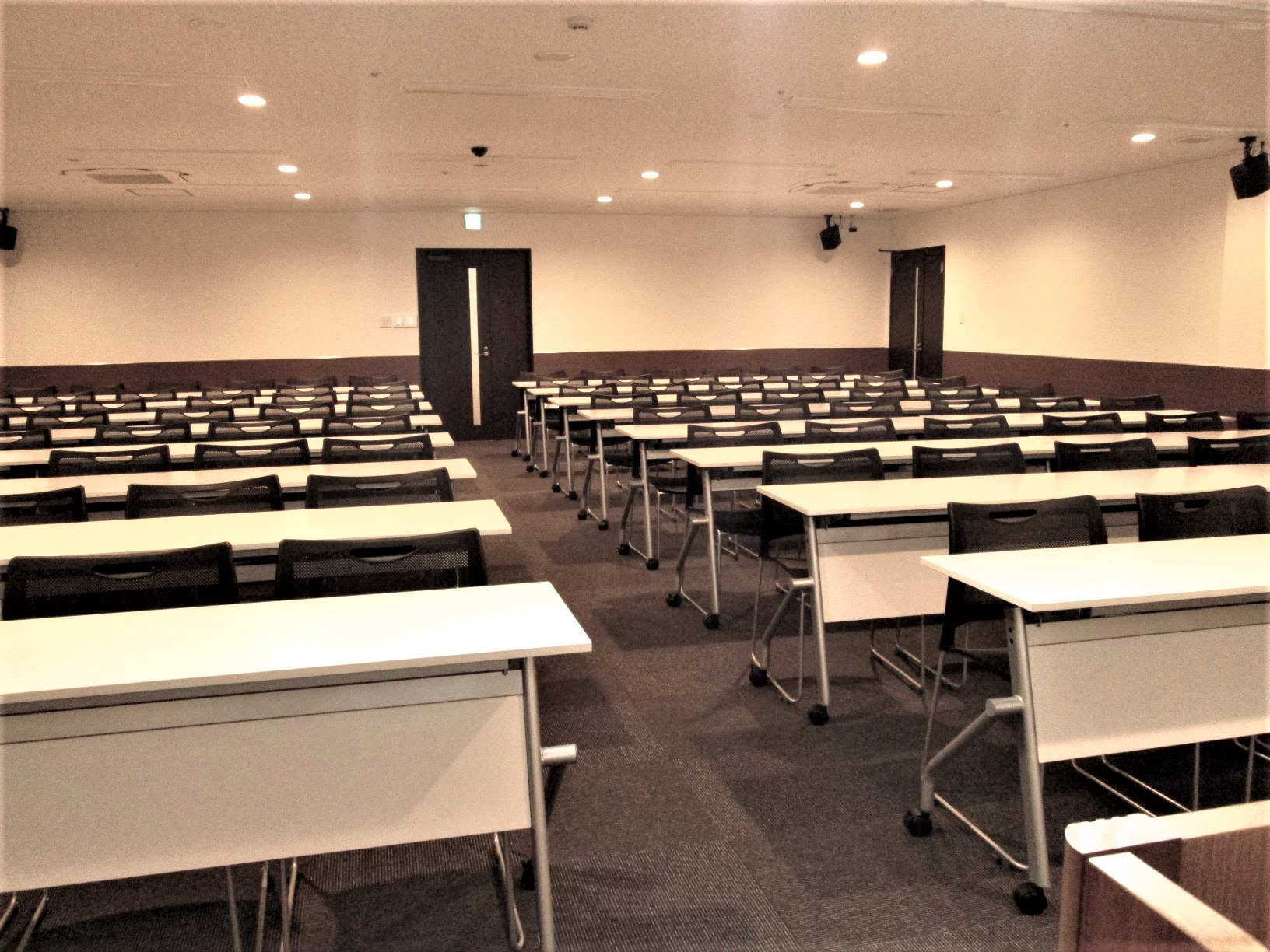 96名 (3名掛) スクール形式が基本レイアウトのお部屋となります。会議、面接、セミナー、勉強会、研修、撮影、物販会など 毎年研修での長期利用実績多数あり。小部屋もあるので、RoomCがメインとし、小部屋につきしまては、面談室や控室としてぜひご活用ください。ご希望のお客様は、窓があるので換気も可能です。